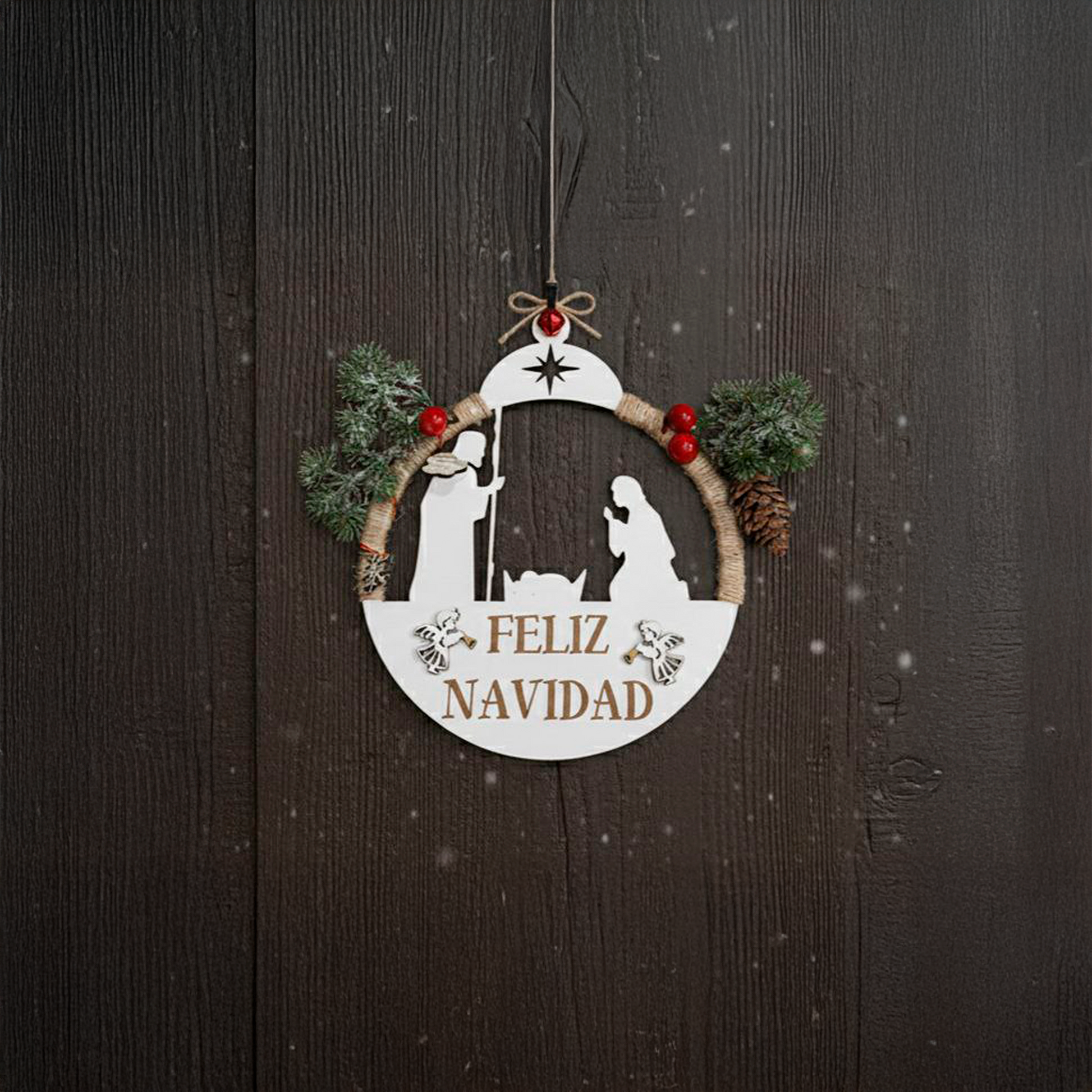Dale un toque especial a tu Navidad con nuestras coronas navideñas de nacimiento, disponibles con luz o sin luz. Cada corona está cuidadosamente diseñada y realizada mediante corte y grabado láser y decoradas a mano, lo que garantiza un acabado preciso y elegante.